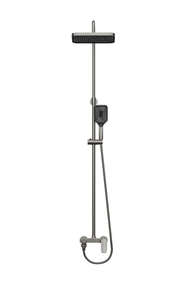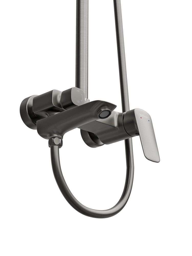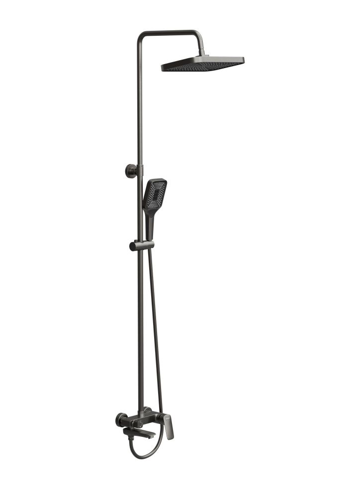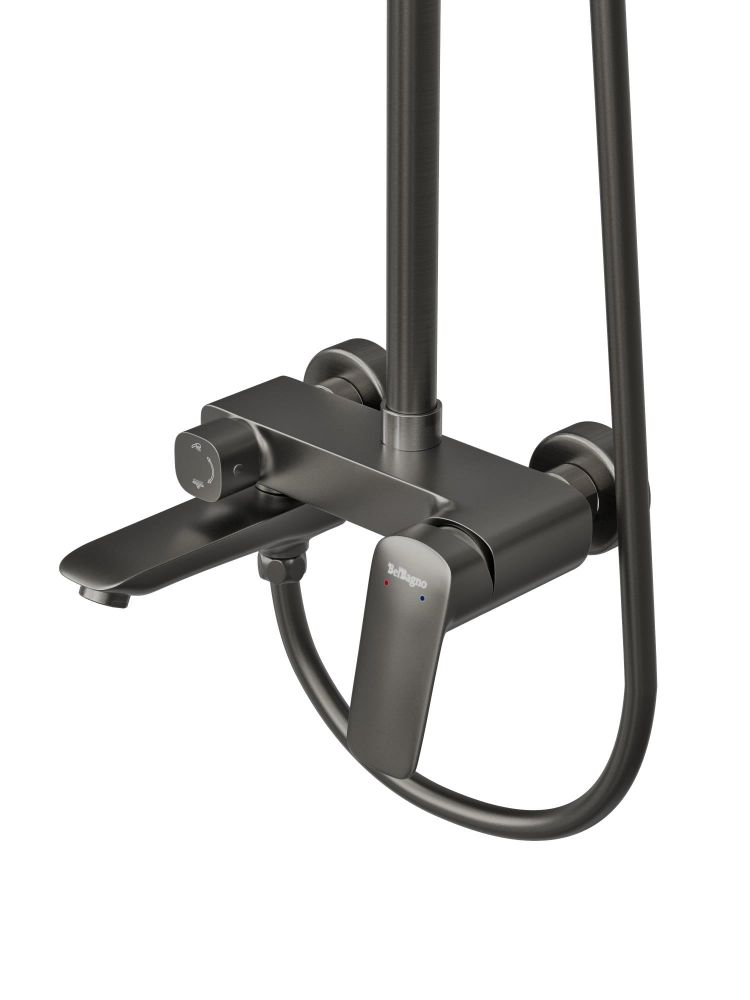 DUE Душевая стойка со смесителем и изливом, оружейная сталь DUE-VSCM-GM