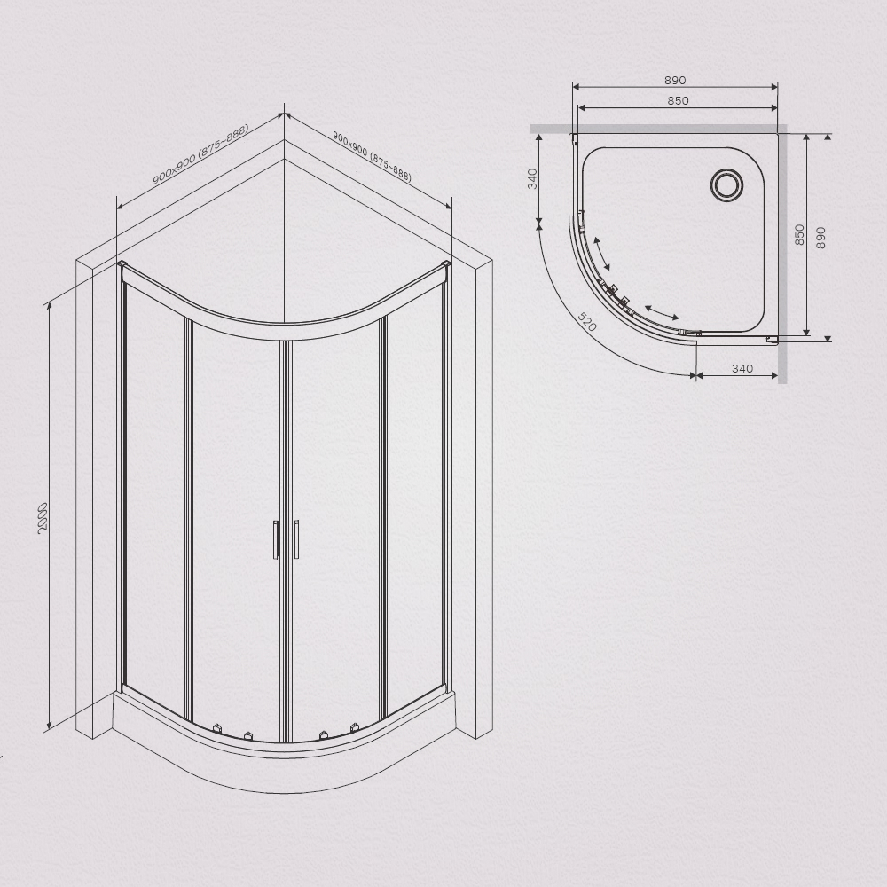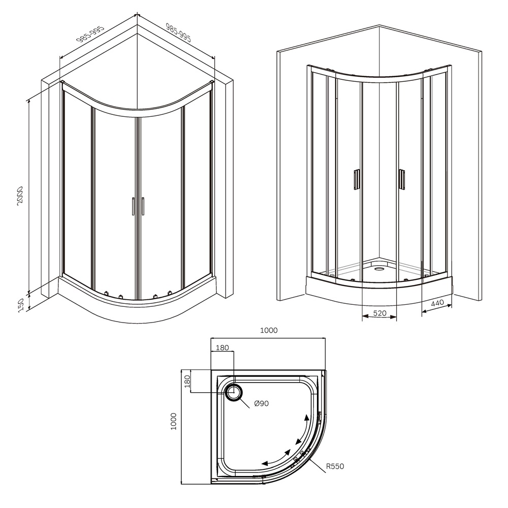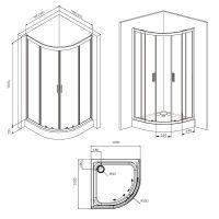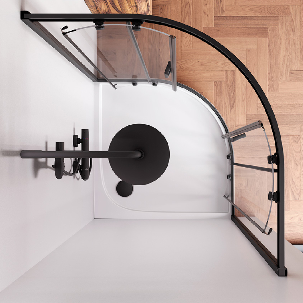 W90G-401-100BT Душевое ограждение Gem 1/4 Rond 100x100 стекло прозрачное, профиль черный матовый, бе