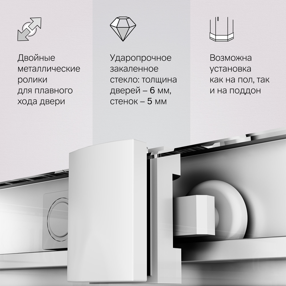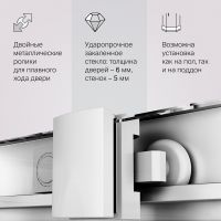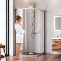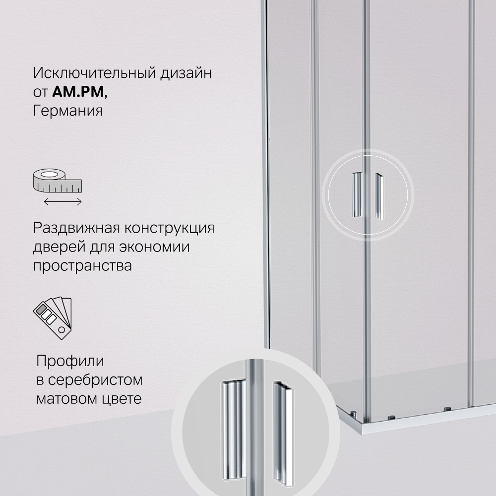 Душевое ограждение Gem – легкая функциональная конструкция для стильного оформления душевой зоны в ванной комнате. Лаконичный дизайн и четко выверенные пропорции от собственного бюро AM.PM Design. Оптимальное решение для любой ванной комнаты. Внушительная высота профиля 1950 мм с заботой о людях высокого роста. А раздвижные двери позволяют сэкономить пространство в помещении. Экономия времени при монтаже: инновационная система EasyFix позволяет собрать каркас ограждения за несколько минут без использования отвертки. А предустановочные профили в комплекте позволяют компенсировать неровность стен до 15 мм. Каждая деталь соответствует высоким требованиям к качеству и эргономике. Надежные двойные металлические ролики обеспечивают плавный и бесшумный ход дверей. Нижние ролики обладают функцией быстрого снятия облегчая процесс уборки. Душевое ограждение выполнено из ударопрочного закаленного стекла. Толщина фиксированного стекла 5 мм толщина стекла двери 6 мм. Профили ограждения изготовлены из надежного алюминия с премиальным анодированным покрытием. Анодирование обеспечивает равномерный насыщенный цвет и особенную стойкость к механическим повреждениям.