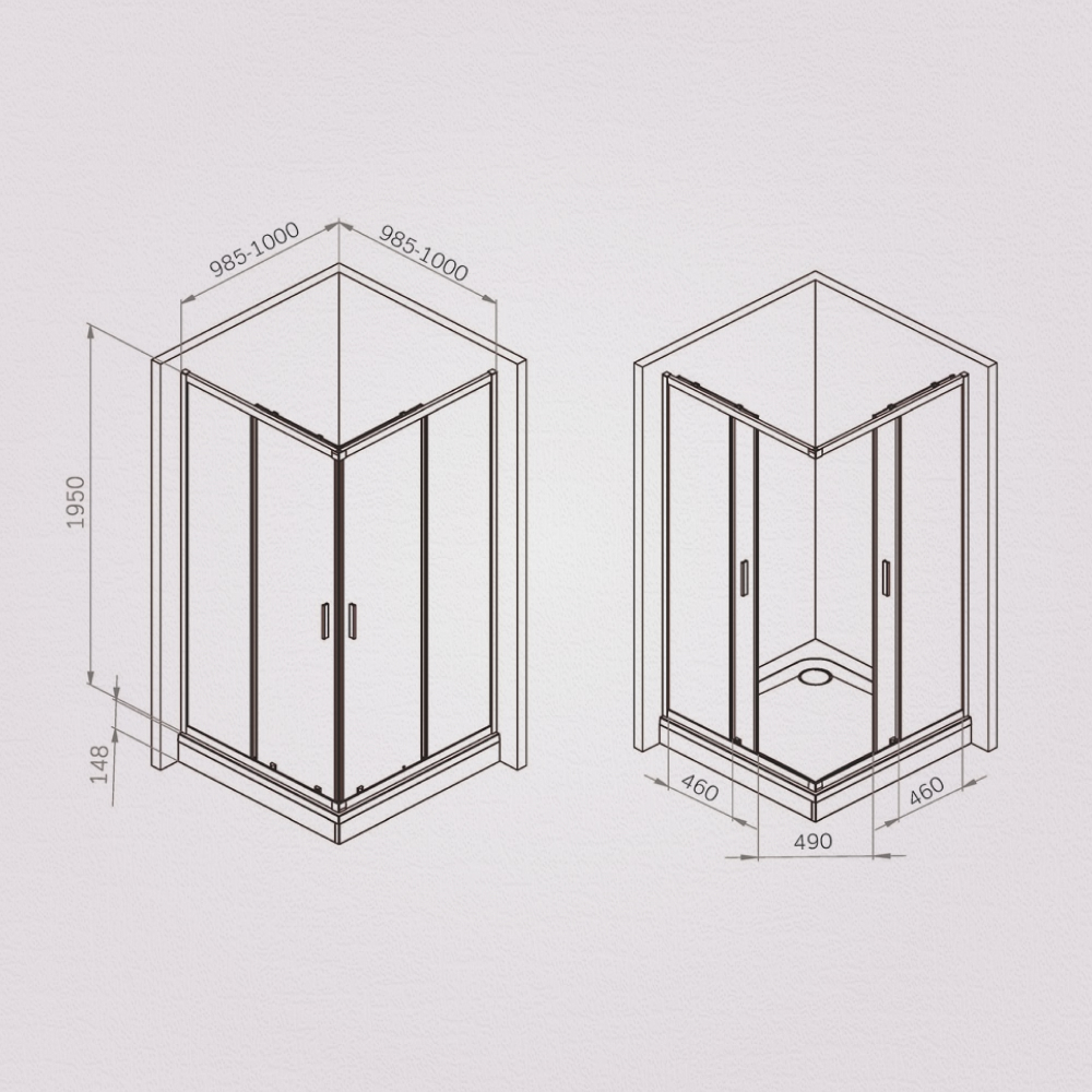 W90G-403-100100-MT Gem душевое огражд квадратн.,раздвиж.двери 100x100 хром мат.,стекло прозрачн