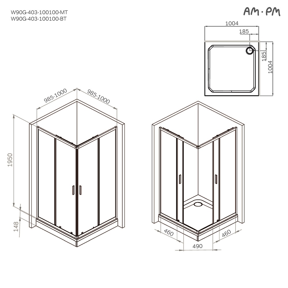 Душевое ограждение 100x100 см, без поддона AM.PM Gem, хром матовый W90G-403-100100-MT