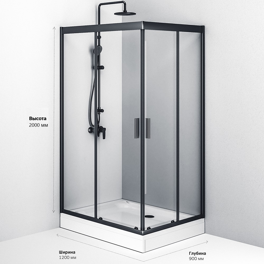 W90G-404-120290-BT Gem Twin Slide 120x90. Душевое ограждение,120x90, профиль черный мат., стекло про