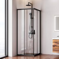 W90G-403-8080-BT Gem душевое огражд квадратн.,раздвиж.двери 80x80 черный мат.,стекло прозрачн