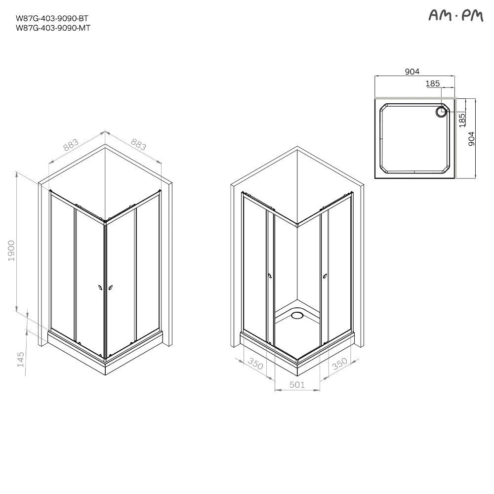 Душевое ограждение 90x90 см, без поддона AM.PM Sunny хром матовый W87G-403-9090-MT