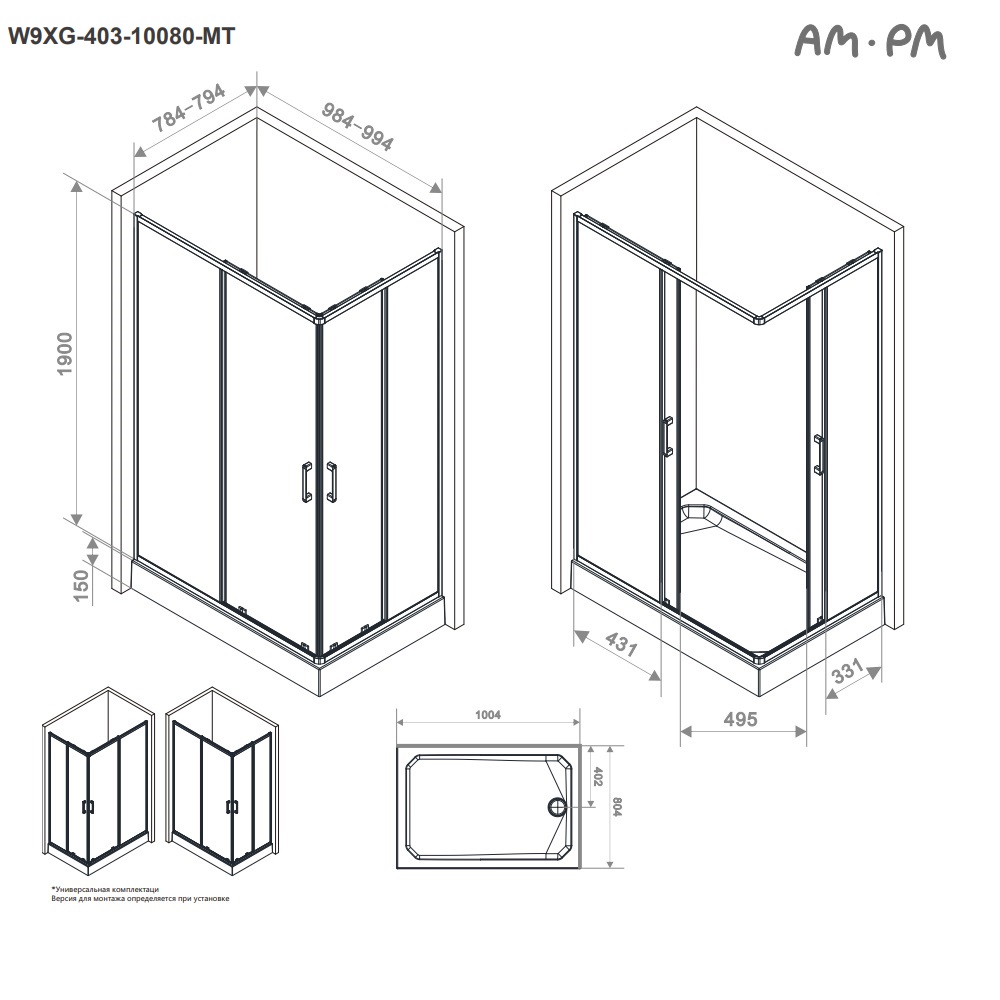 Душевое ограждение AM.PM Above 100х80 без поддона W9XG-403-10080-MT