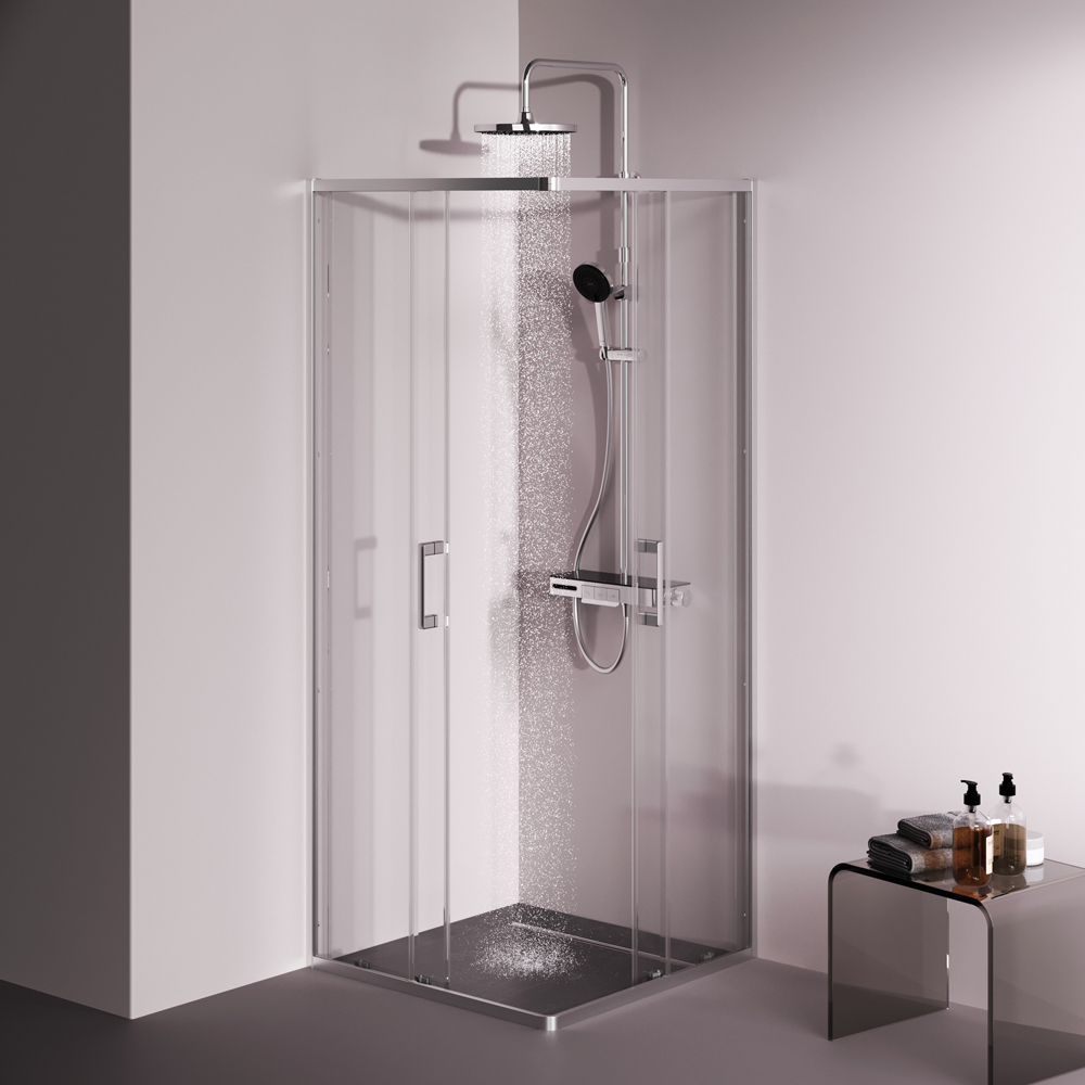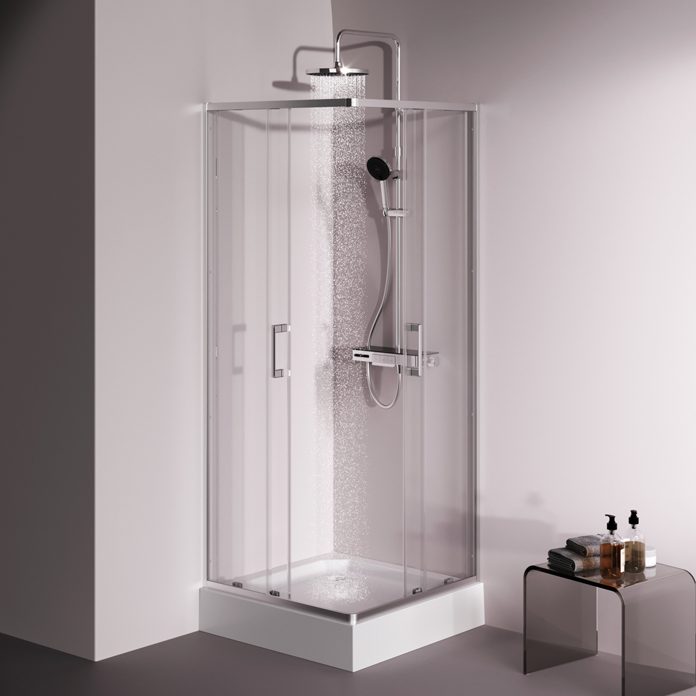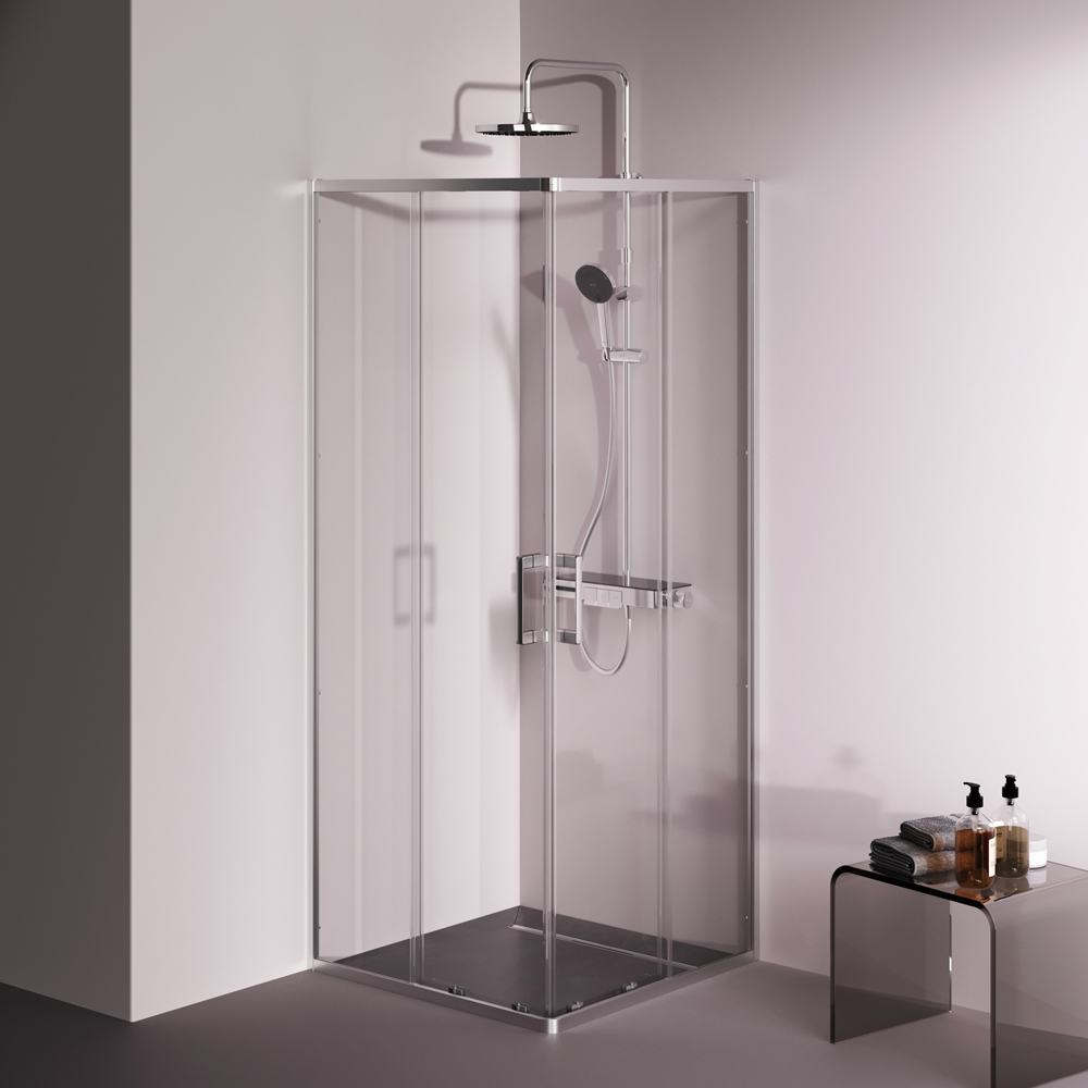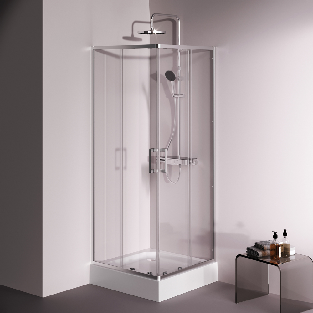 W9XG-403-8080-MT Above душ огражд 80x80 квадратн, раздвижн двери, проф хром мат, стекло прозр