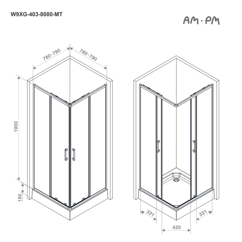 Душевое ограждение AM.PM Above 80х80 без поддона W9XG-403-8080-MT