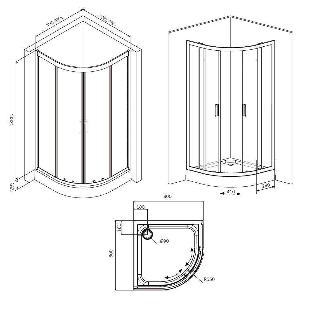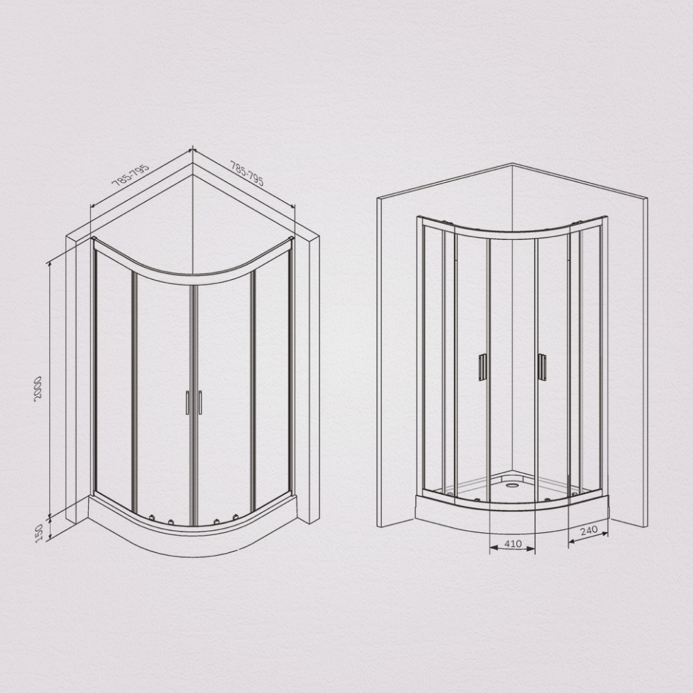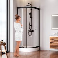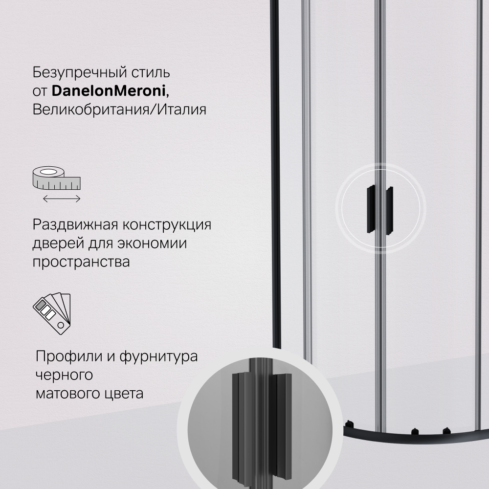 Душевое ограждение AM.PM Gem 1/4 Rond 80x80 стекло прозрачное, профиль черный матовый, W90G-401-080BT