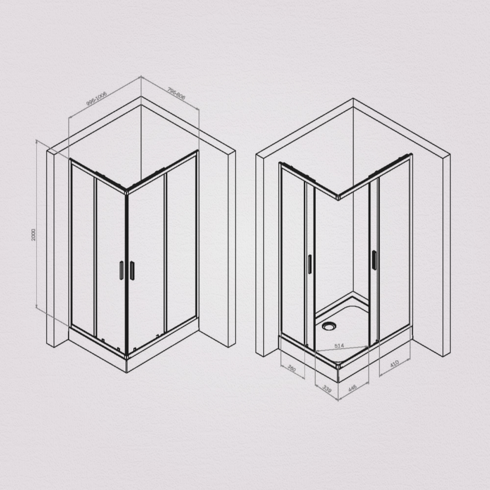Душевое ограждение AM.PM Gem S 100х80 прям.,стекло прозрачное, профиль черный матовый, W93G-404-100280-BT