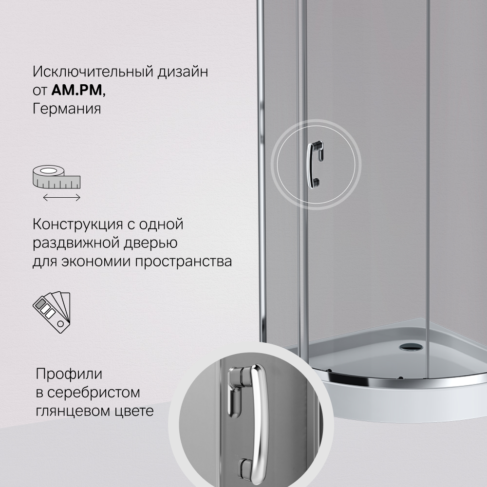 Душевое ограждение AM.PM Like Solo Slide 90x90, стекло тонированное, W83G-315-090CG64