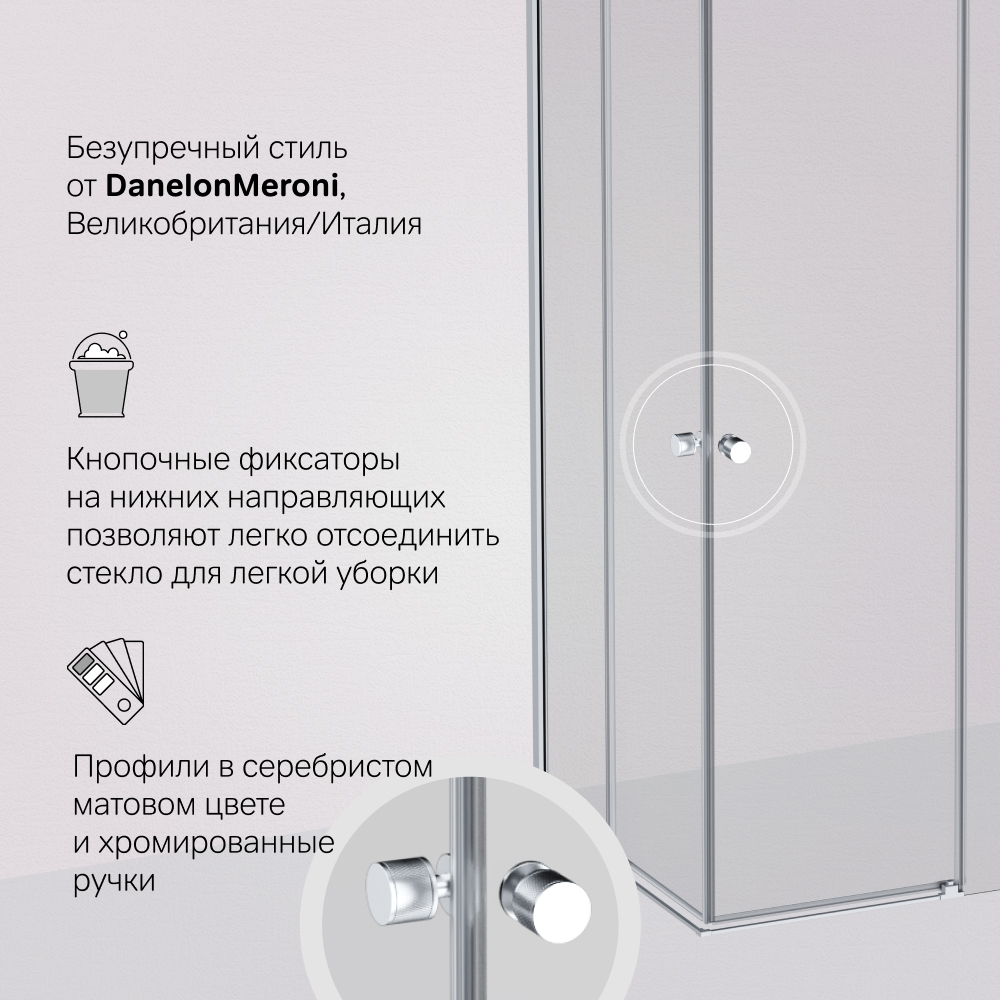 Надежные комплектующие безупречный стиль и простой монтаж – все это про душевые ограждения AM.PM X-Joy. Тонкий контур окантовки невесомый силуэт и отсутствие нижних профилей – продуманная функциональность от дизайн-бюро DanelonMeroni (Великобритания / Италия). Прочная конструкция: верхние ролики увеличенного диаметра и нижние направляющие с надежной системой захвата стекла для плавного хода двери. Кнопочные фиксаторы на нижних направляющих позволяют легко отсоединить стекло для легкой уборки. Безопасное закаленное стекло: толщина дверей – 6 мм стенок – 4 мм. Беспрецедентно стойкое покрытие: надежный алюминиевый профиль окрашен методом порошкового нанесения при высокой температуре благодаря чему краска ложится на профиль идеально ровно а также проникает в структуру самого металла. Яркий акцент в вашем интерьере: ультрамодные хромированные ручки с паттерном станут настоящим украшением ванной комнаты. Стильное и практичное решение: профили в цвете матовое серебро предотвращают появление отпечатков пальцев рук и сохраняют поверхность чистой намного дольше. Высота ограждения 1900 мм с заботой о людях высокого роста.