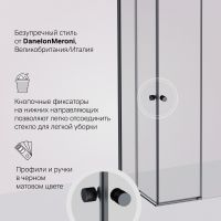 Надежные комплектующие безупречный стиль и простой монтаж – все это про душевые ограждения AM.PM X-Joy. Тонкий контур окантовки невесомый силуэт и отсутствие нижних профилей – продуманная функциональность от дизайн-бюро DanelonMeroni (Великобритания / Италия). Прочная конструкция: верхние ролики увеличенного диаметра и нижние направляющие с надежной системой захвата стекла для плавного хода двери. Кнопочные фиксаторы на нижних направляющих позволяют легко отсоединить стекло для легкой уборки. Безопасное закаленное стекло: толщина дверей – 6 мм стенок – 4 мм. Беспрецедентно стойкое покрытие: надежный алюминиевый профиль окрашен методом порошкового нанесения при высокой температуре благодаря чему краска ложится на профиль идеально ровно а также проникает в структуру самого металла. Яркий акцент в вашем интерьере: ультрамодные ручки с паттерном станут настоящим украшением ванной комнаты. Матовые профили и ручки выполненные в черном цвете предотвращают появление отпечатков пальцев рук и сохраняют поверхность чистой намного дольше. Высота ограждения 1900 мм с заботой о людях высокого роста.