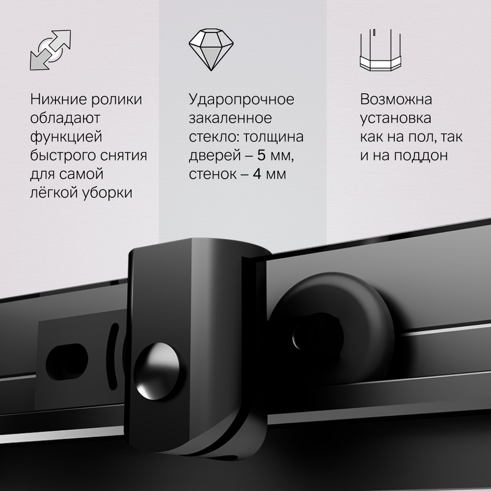 Душевое ограждение AM.PM Sunny квадрат 80x80 черный W87G-403-8080-BT вдохновляющие на свершения сделают ванную комнату вашим тайным местом силы и перезагрузки. Эстетика и функциональность - то что моментально приковывает взгляды. Исключительный дизайн к которому хочется прикоснуться. Великолепное исполнение в матовом черном цвете. Параметры модели 80x80 сантиметров образуют квадратную форму. Высота ограждения достигает 190 сантиметров. Идеальный размер для комфортного пользования. Подходит даже для самых высоких. Ограждение имеет сверхпрочные закаленные стёкла. Толщина фиксированных стекол составляет 4 мм двери имеют увеличенную толщину 5 мм. Невероятно плавное и легкое открывание двери благодаря двойным усиленным роликам из ABS-пластика. Нижние ролики обладают функцией быстрого снятия для самой лёгкой уборки. Магнитные уплотнители дверей делают ограждение полностью герметичным и предотвращают попадание воды за пределы душевой зоны. Ограждение включает в себя уникальный решение дизайн ручки в виде крючка на который можно повесить необходимые для быстрого и удобного пользования вещи. Ручка имеет невероятно комфортный захват что позволяет открывать дверь без особого усилия. Душевое ограждение AM.PM из коллекции Sunny - идеальное решение для вашей ванной комнаты.