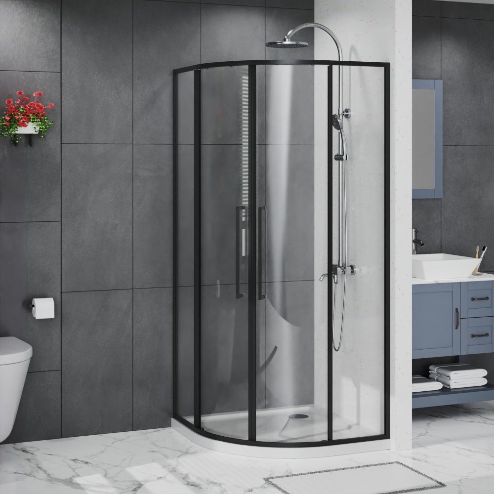 Душевое ограждение Azario SHANGHAI 1000х1000х1950 четверть круга, прозрачное стекло 6 мм, профиль черный матовый (AZ-S43-100-MB-CL)