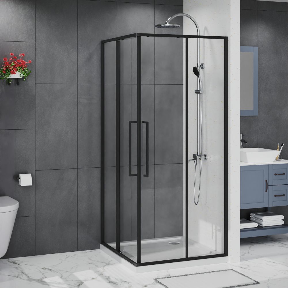Душевое ограждение Azario SHANGHAI 1000х1000х1950 прозрачное стекло 6 мм, профиль черный матовый (AZ-R43-100-MB-CL)