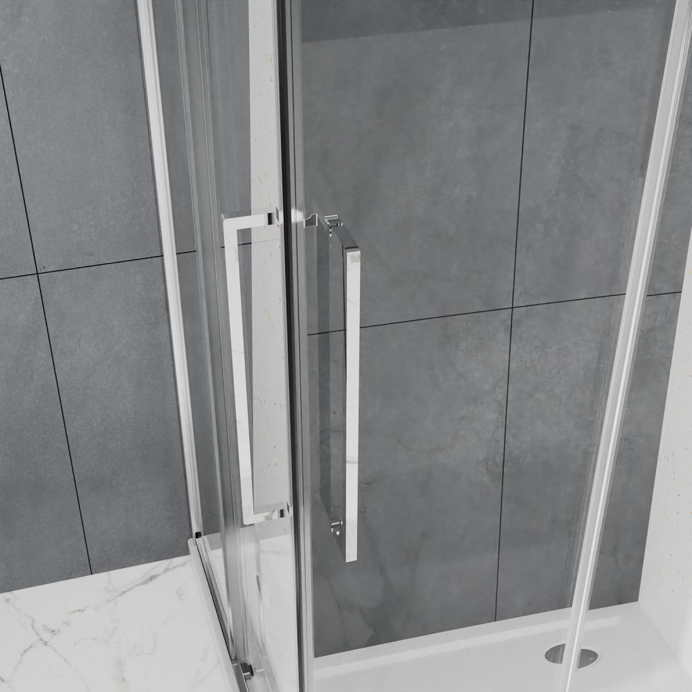 Душевой Уголок Квадратный, ВХОД С УГЛА, с двумя раздвижными дверьми, на двойных роликах с нержавеющими подшипниками. Ручки выполнены из латуни в цвет профиля. Все стекла имеют толщину 6 мм. Профиль выполнен из анодированного алюминия.