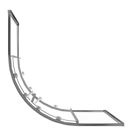 выполнены из 5-ти миллиметрового прозрачного закаленного, безопасного стекла, с подвижными дверками; обрамление выполнено из анодированного алюминиевого профиля с высококачественным покрытием;нижние ролики с механизмом отстёгивания обеспечивают легкий доступ к стеклу и профилям для очистки; ручки пластиковые в цвет профиля; стыковые элементы стеклянного ограждения снабжены влагостойкими силиконовыми уплотнителями; магнитное закрывание обеспечивает герметичное прилегание дверей