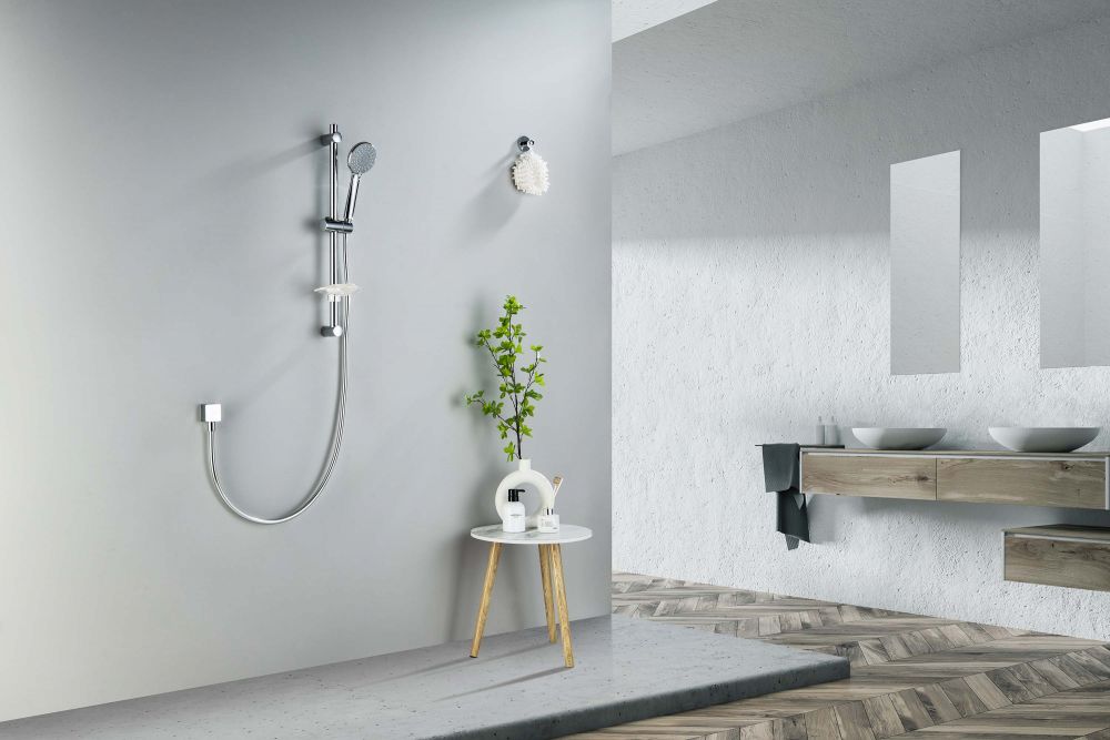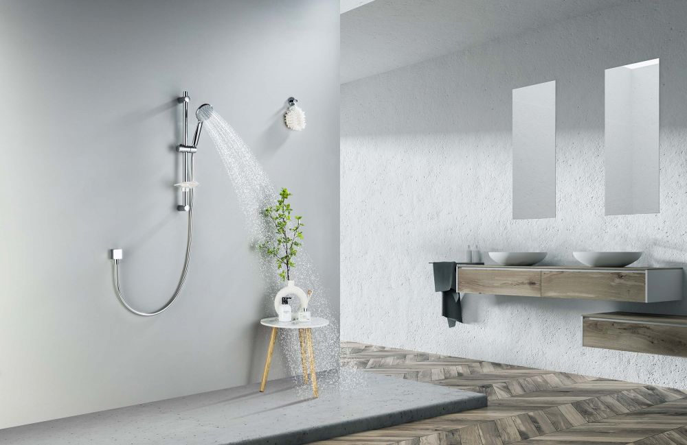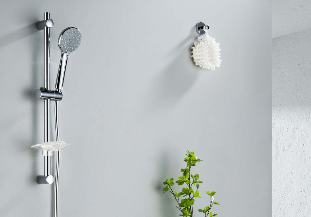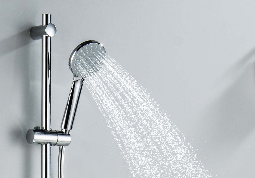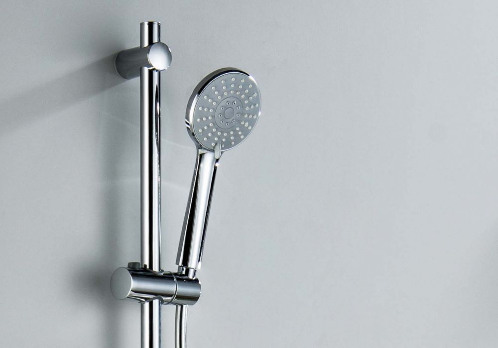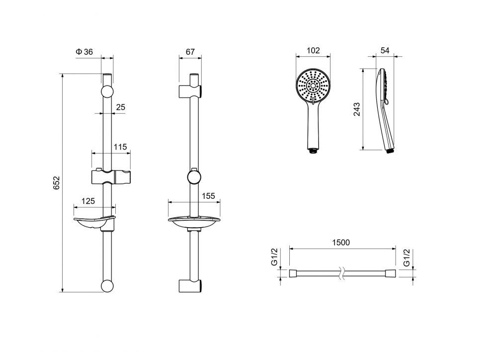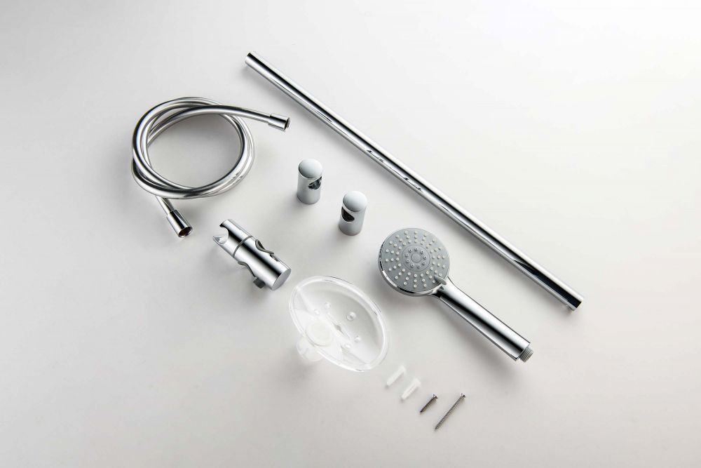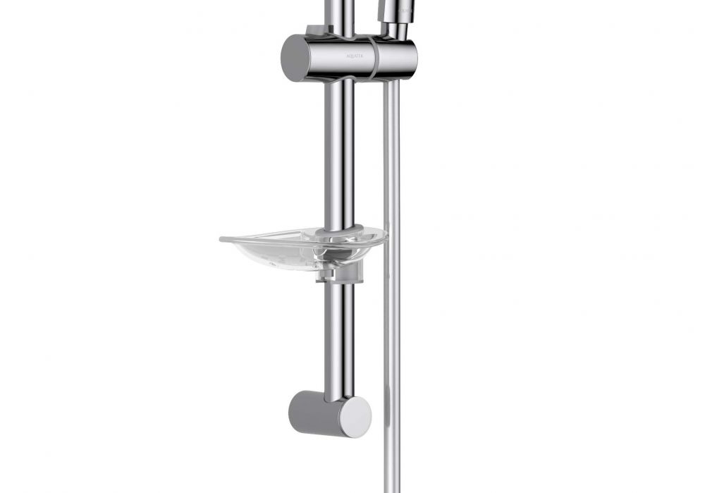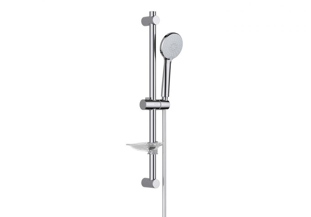 душевая стойка из нерж.; с держателем для мыла ; пластиковый ручной душ, 3 функции; душевой шланг из пластика, длина 1,5 м