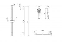 душевая штанга из нерж.; ручной душ из пластика, 3 функции; душевой шланг из пластика, длина 1,5м;