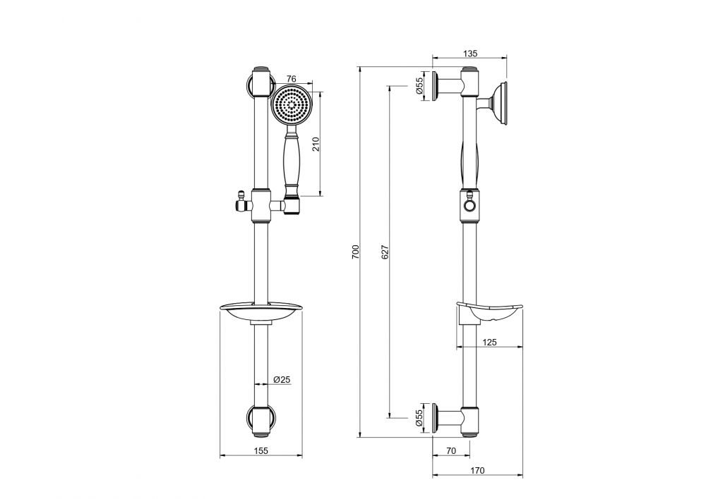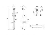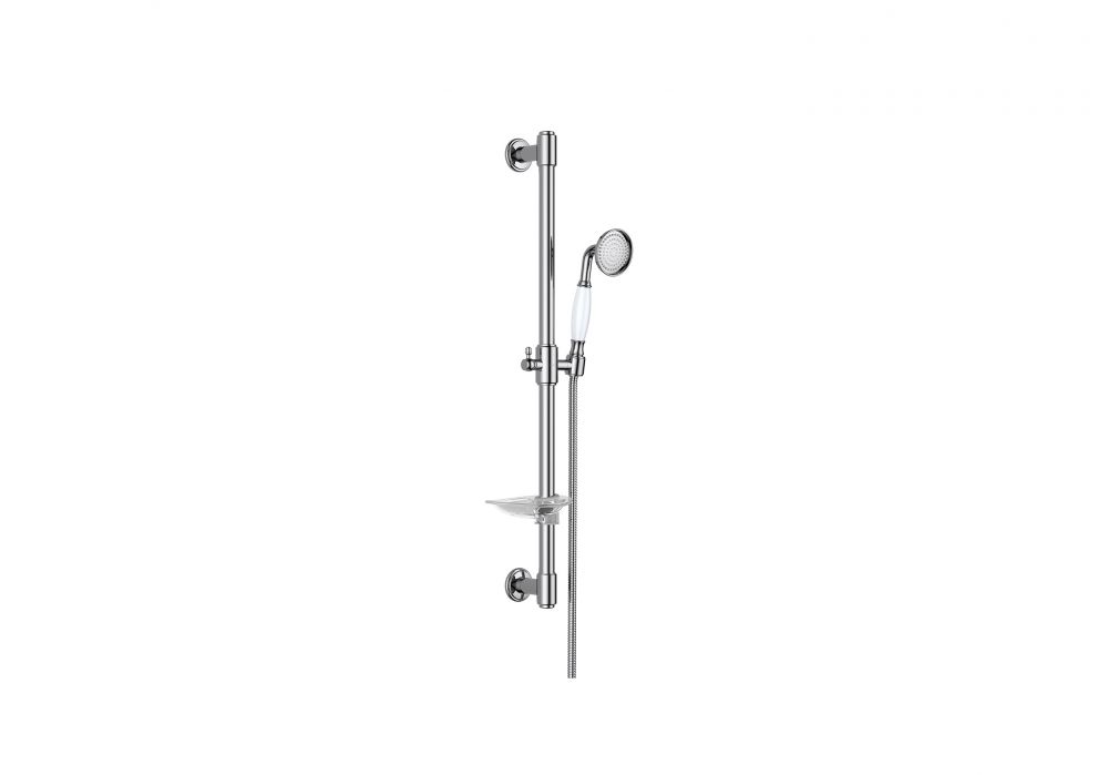 латунные держатели; душевая штанга из нерж с мыльницей; душевой шланг из нерж., длина 1,5м; ручной душ из латуни, 1 функции