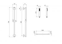 душевая стойка из латуни; ручной душ из латуни, 1 функция; душевой шланг из пластика, длина 1,5 м;