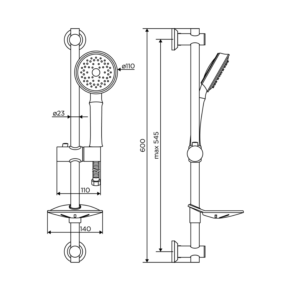 Classic душевой комплект, ручной душ 1 функция, стойка 600 мм, шланг 175 мм