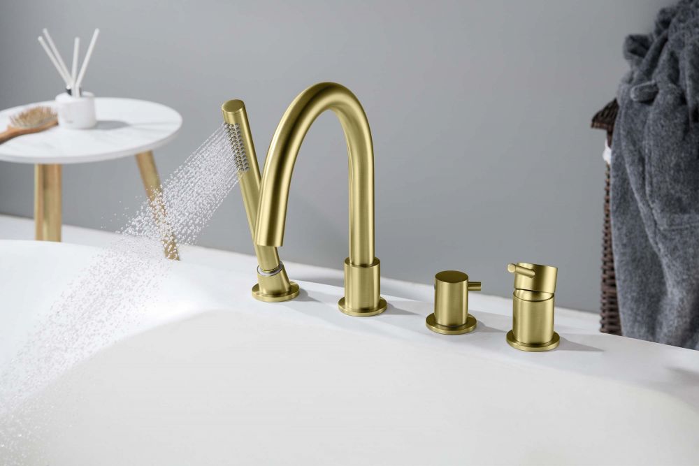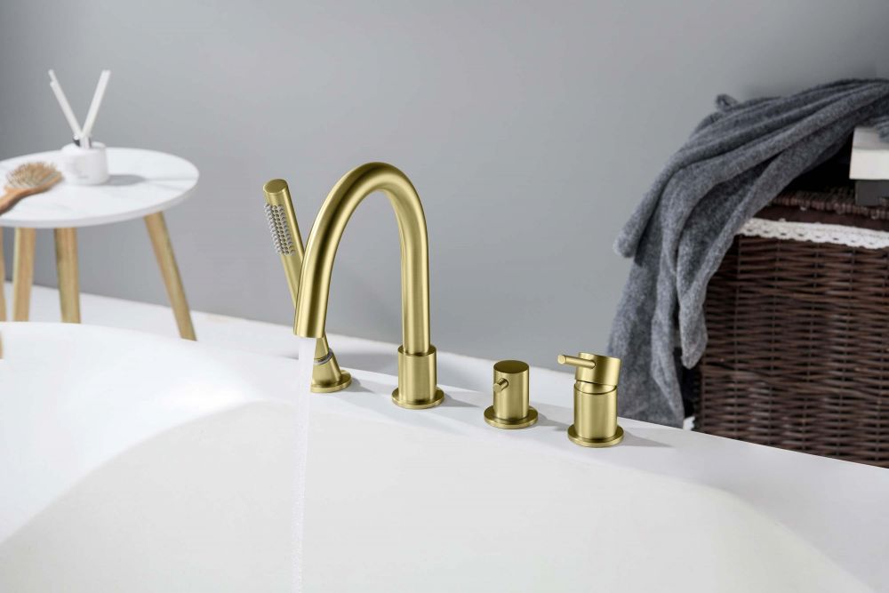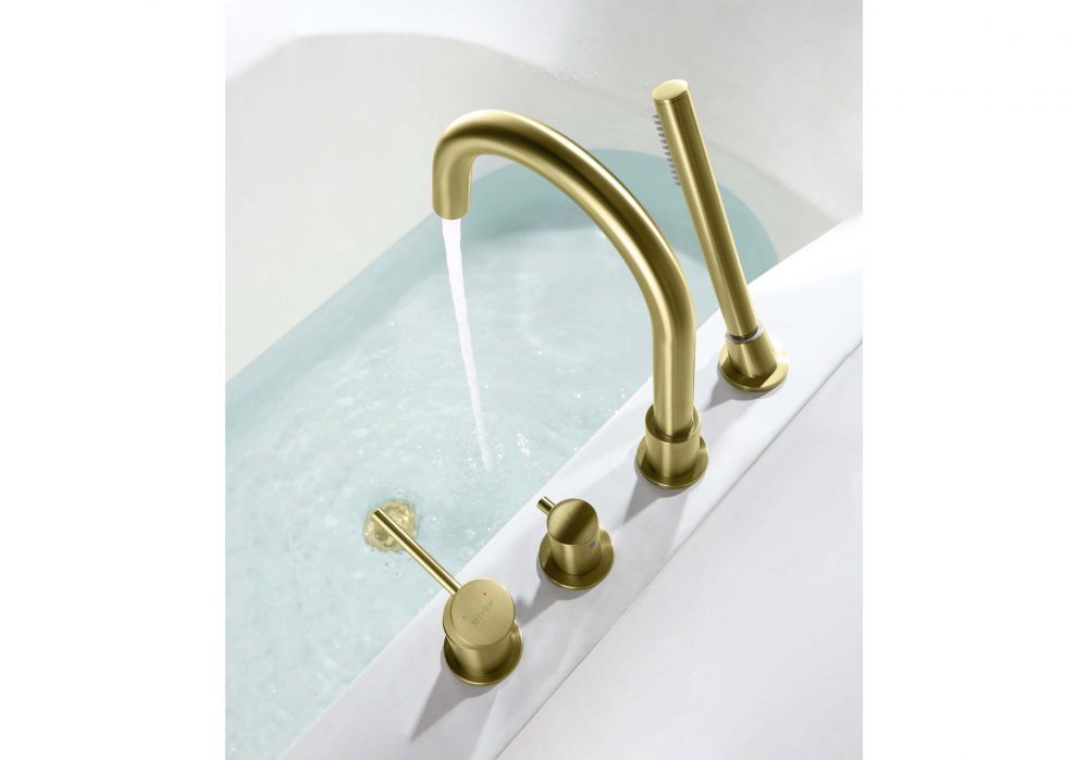 AQ1348BG ЕВРОПА смеситель на борт ванны на 4 отв., шлиф. золото