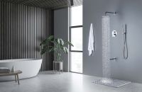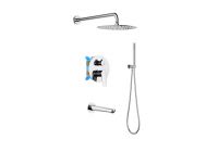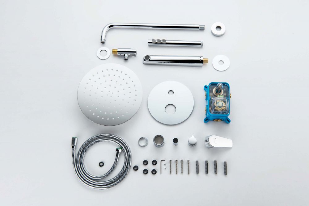 смеситель из латуни на 3 потребителя; картридж citec 35 мм, испания; декоративная пластина 3мм из нерж.; кронштейн для верхнего душа 400мм из нерж.; верхний душ 250х2мм из нерж.; душевой шланг 1,5м из нерж.; латунный держатель ручного душа; ручной душ из латуни на 1 режим струи; излив длиной 220мм из латуни; упакован в коробку, пленку из вспененного пвх