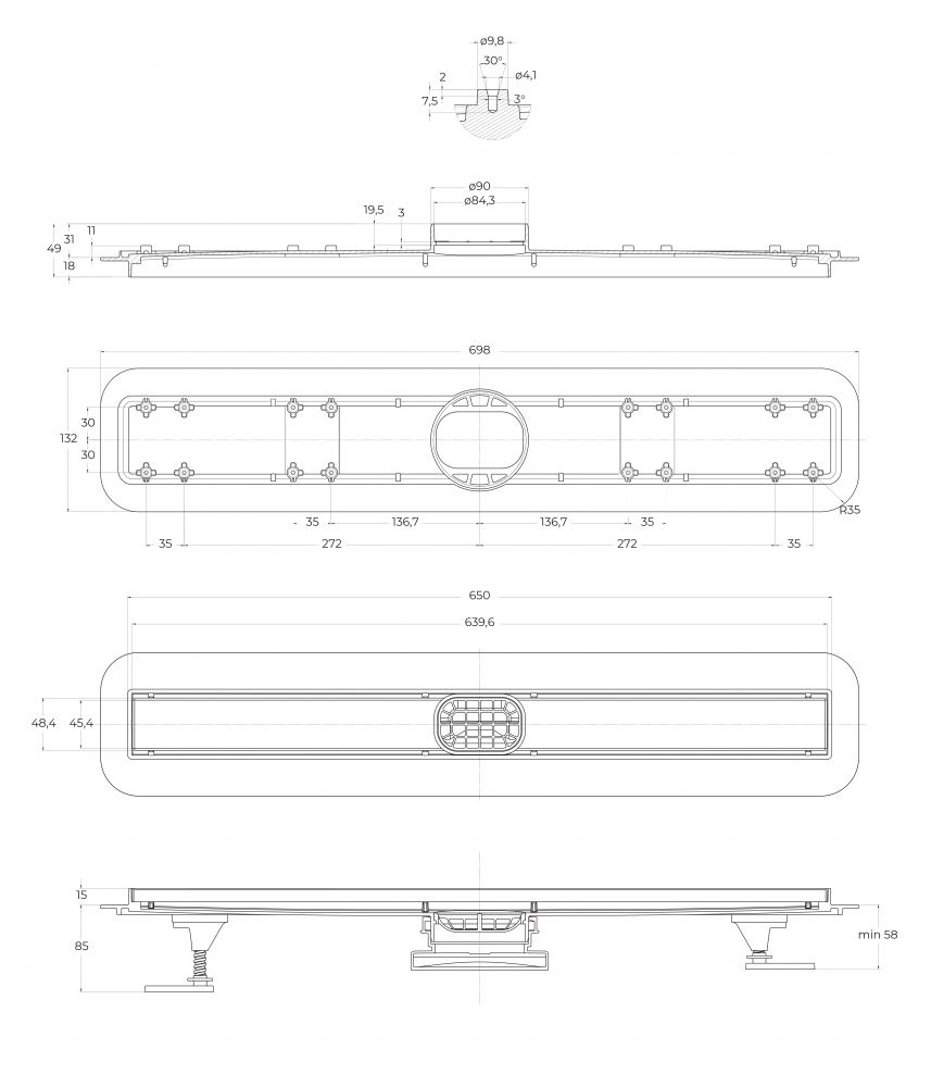 Душевой прямоуголльный лоток из нержавеющей стали BELBAGNO LUCE 70 см, BB-LD-LUCE-70-NERO. Монтаж производится в ровень с полом. Цвет лотка черный матовый