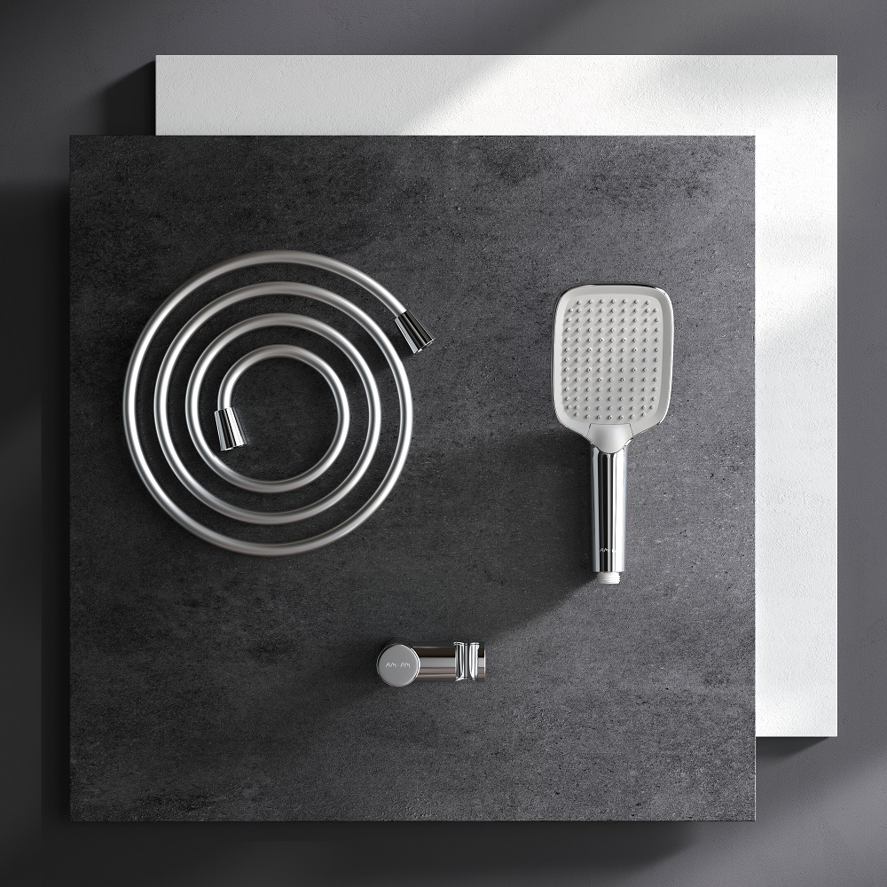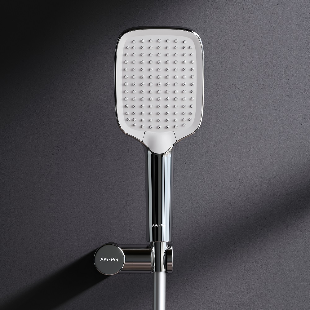 Встречайте коллекцию Func – самую функциональную коллекцию в линейке AM.PM. Наши инженеры продумали и учли каждую деталь чтобы сделать взаимодействие с продуктами максимально простым и комфортным для всех членов семьи. Премиальный размер лейки позволит вам почувствовать все преимущества использования дизайнерского продукта. А три режима ручного душа Spray EnerJet Spray + Massage подарят полный спектр ощущений при принятии душа: помогут взбодриться утром и расслабиться после рабочего дня. Переключайте режимы нажатием всего одной кнопки. Невероятно легкая очистка душевых форсунок благодаря функции Rub&Clean. Набор дополнен регулируемым держателем для ручного душа. Шарнирное соединение защищает душевой шланг от перекручивания.