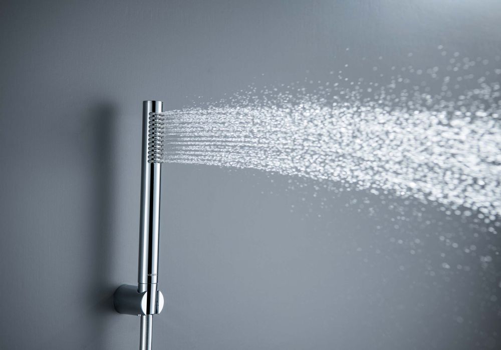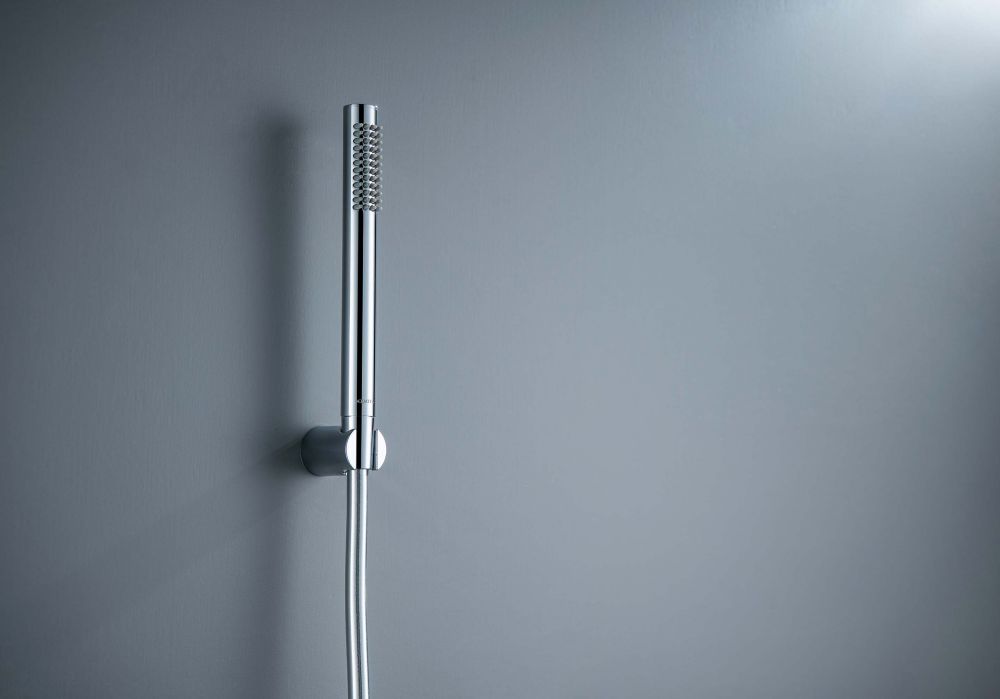 округлый прямоугольный ручной душ из латуни; держательдля душа из пластика; душевой шланг из пластика, длина 1,5 м