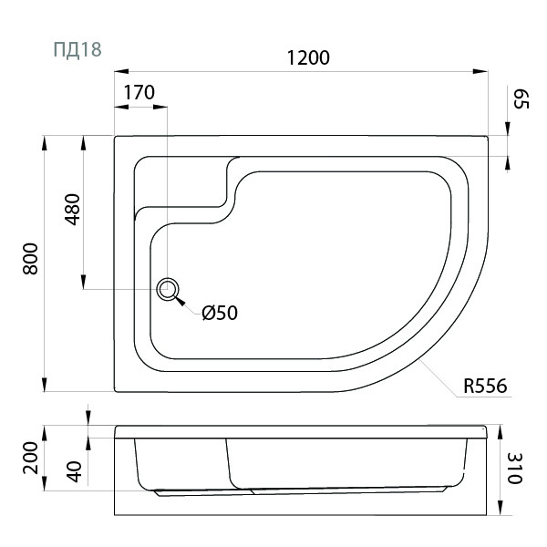 Душевой поддон Triton средний асимметричный 120х80, левый Щ0000038231