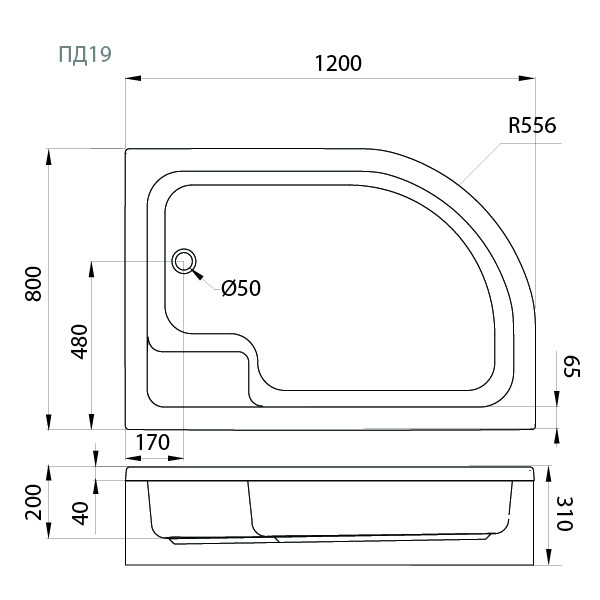 Душевой поддон Triton средний асимметричный 120х80, правый Щ0000038232