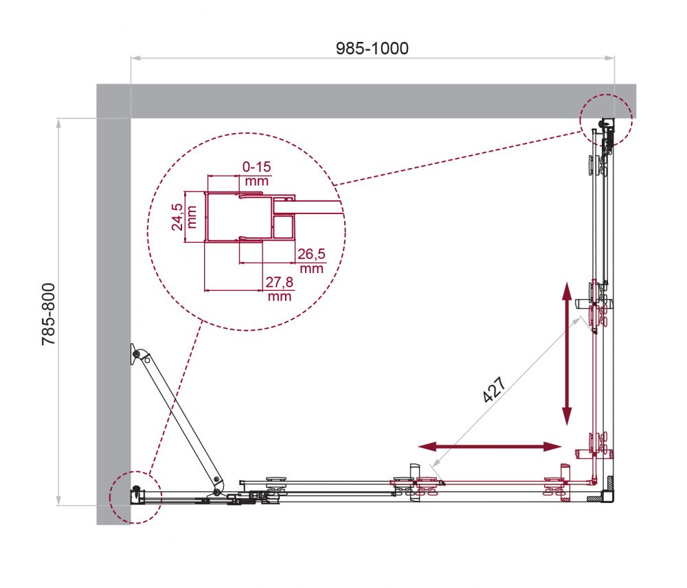 Душевой уголок BelBagno LUCE-AH-21-100/80-C-Cr профиль в цвете хром закаленное стекло прозрачное толщиной 6мм