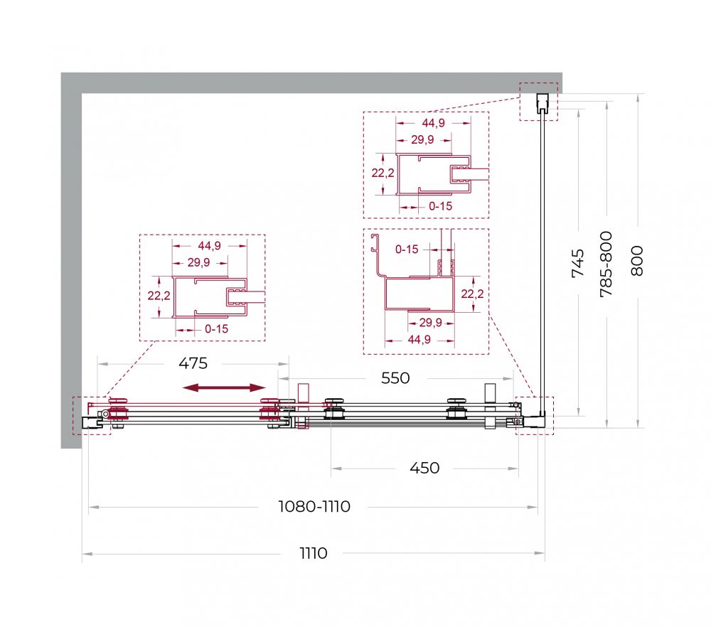 Раздвижные двери оборудованы одинарными роликами увеличенного диаметра, корпуса которых изготовлены из прочного сплава Zamak (цинко-алюминиево-магниево-медного состава) и нержавеющей стали. Такая комбинация материалов обеспечивает длительную и надежную эксплуатацию механизмов.