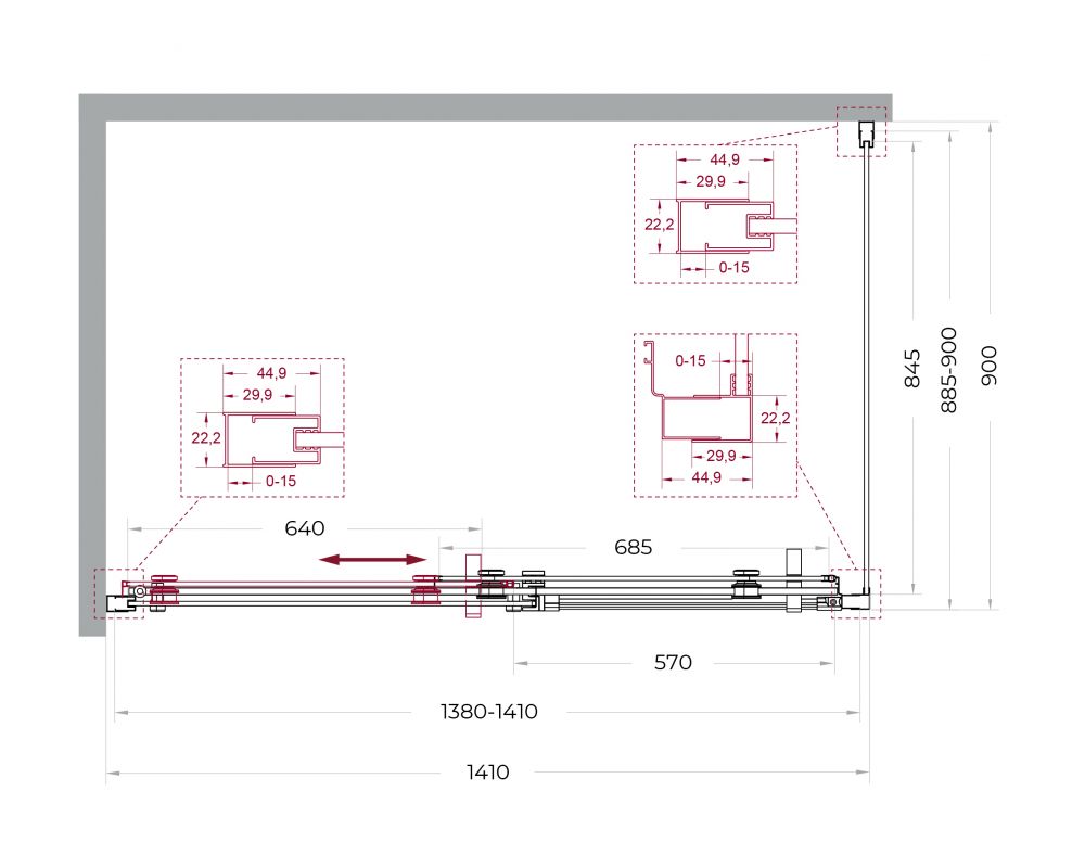 Раздвижные двери оборудованы одинарными роликами увеличенного диаметра, корпуса которых изготовлены из прочного сплава Zamak (цинко-алюминиево-магниево-медного состава) и нержавеющей стали. Такая комбинация материалов обеспечивает длительную и надежную эксплуатацию механизмов.