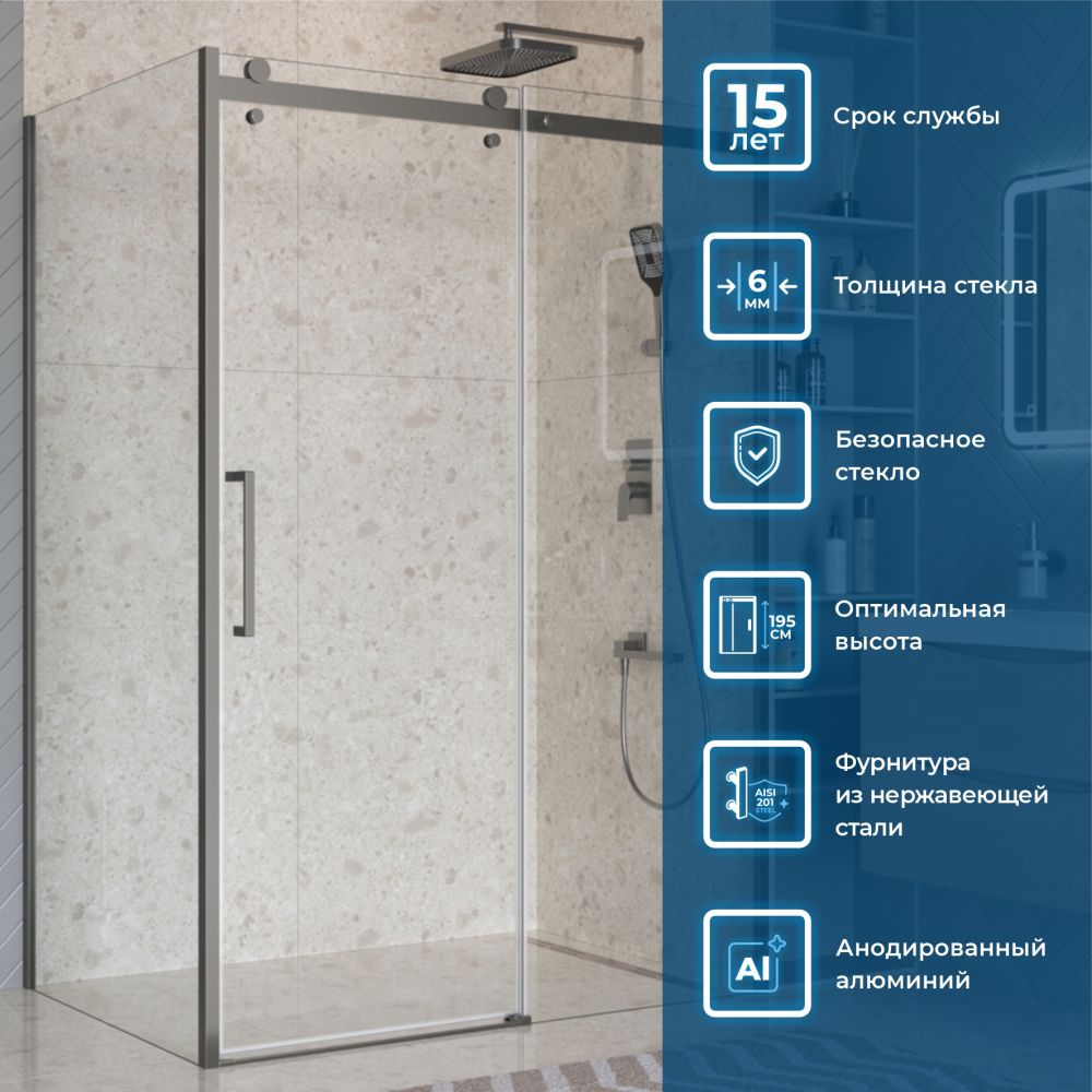 Душевой уголок BelBagno MARINO-2-AH-1-150/100-C-GM прямоугольный, оружейная сталь 150x100