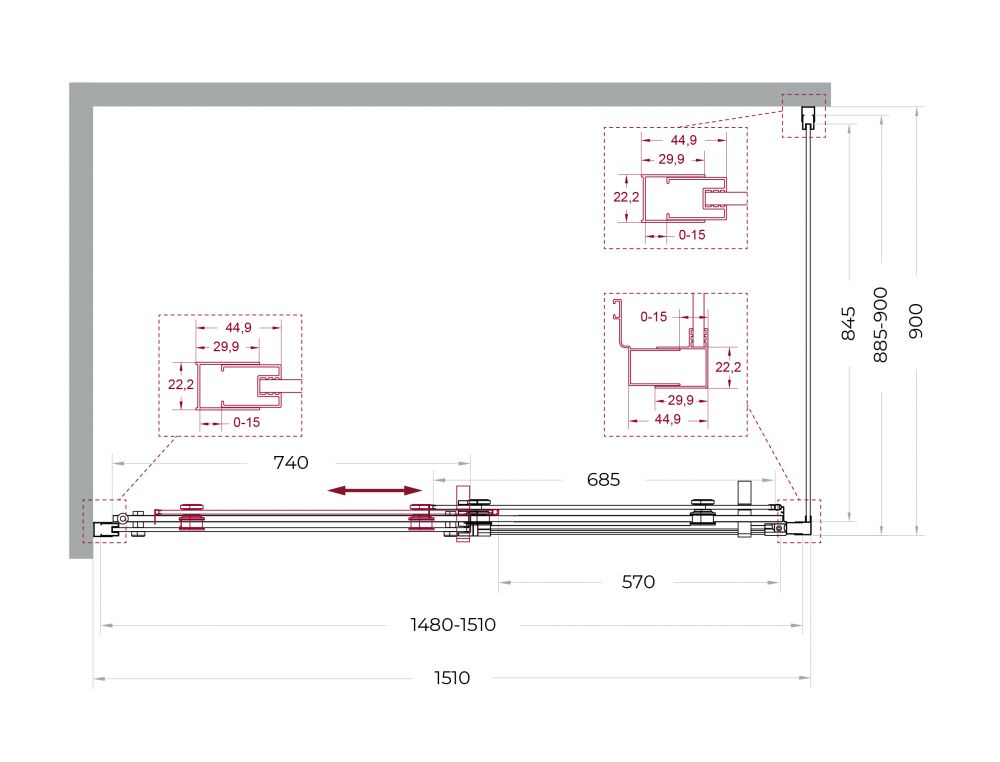 Раздвижные двери оборудованы одинарными роликами увеличенного диаметра, корпуса которых изготовлены из прочного сплава Zamak (цинко-алюминиево-магниево-медного состава) и нержавеющей стали. Такая комбинация материалов обеспечивает длительную и надежную эксплуатацию механизмов.