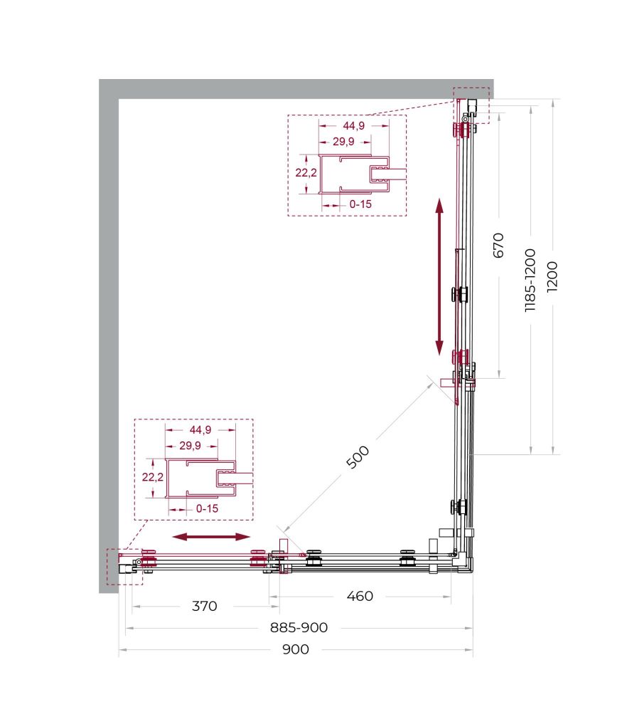 Раздвижные двери оборудованы одинарными роликами увеличенного диаметра, корпуса которых изготовлены из прочного сплава Zamak (цинко-алюминиево-магниево-медного состава) и нержавеющей стали. Такая комбинация материалов обеспечивает длительную и надежную эксплуатацию механизмов.