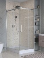 Коллекция предлагает четыре модели душевых ограждений на выбор: квадратные (A-2), прямоугольные (AH-1, AH-2) и дверь в нишу (BF-1). Все модели имеют оптимальную высоту 1950 мм. и представлены в популярных размерах, что позволяет найти идеальное решение для обеспечения комфорта и практичности душевой зоны.