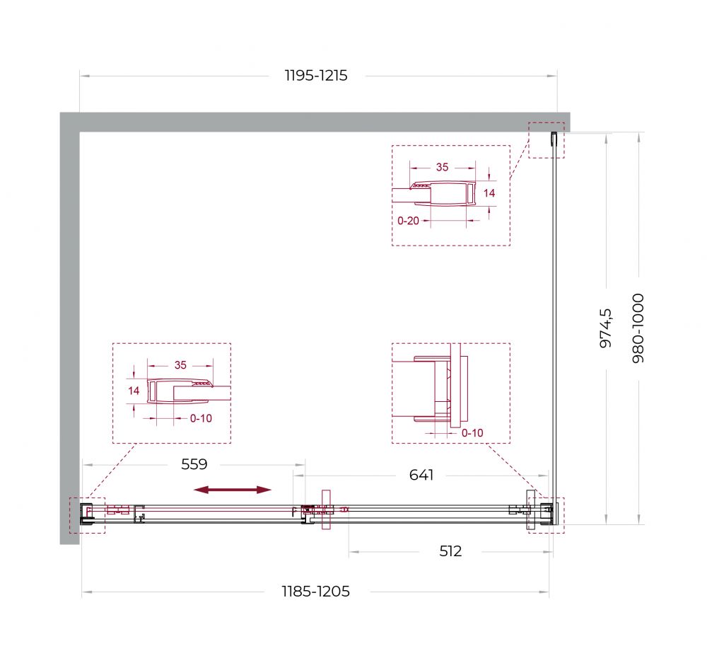 ● Система подвески: Двойные навесные ролики из нержавеющей стали с держателем стекла обеспечивают плавное движение створки, ее устойчивость и отсутствие перекосов.