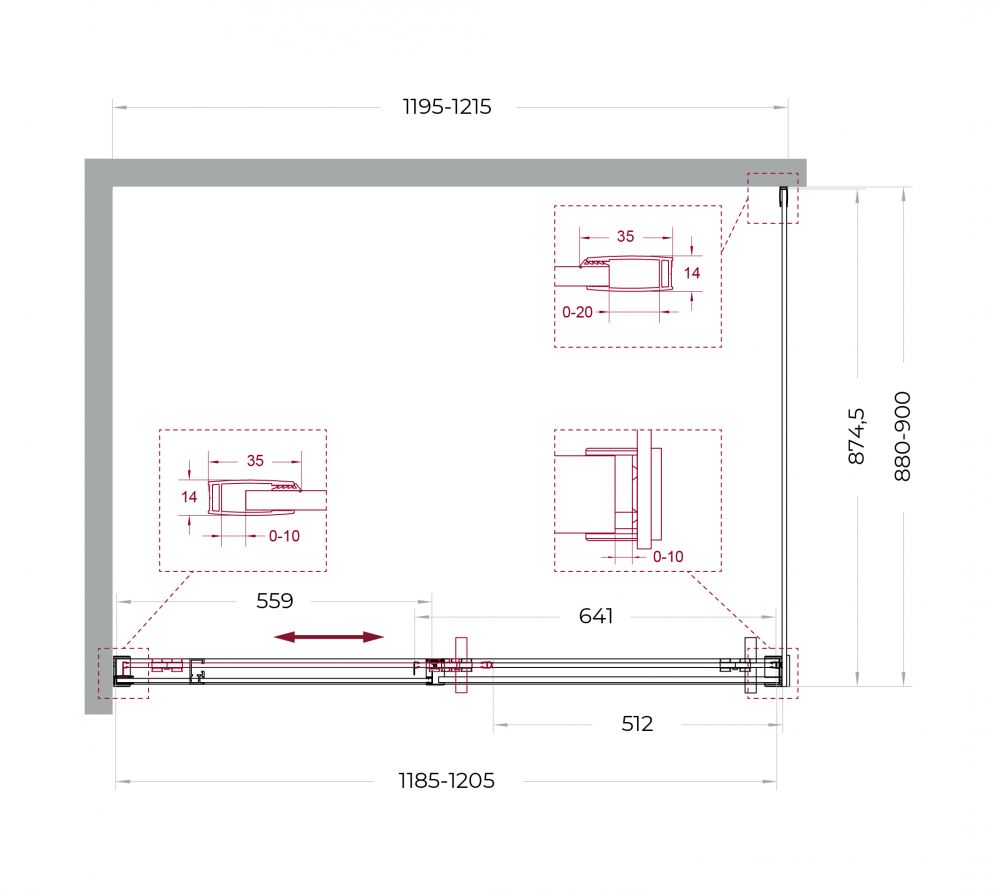 ● Система подвески: Двойные навесные ролики из нержавеющей стали с держателем стекла обеспечивают плавное движение створки, ее устойчивость и отсутствие перекосов.
