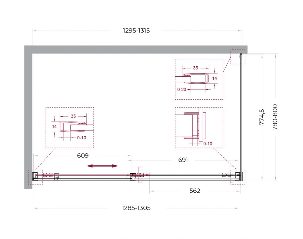 ● Система подвески: Двойные навесные ролики из нержавеющей стали с держателем стекла обеспечивают плавное движение створки, ее устойчивость и отсутствие перекосов.