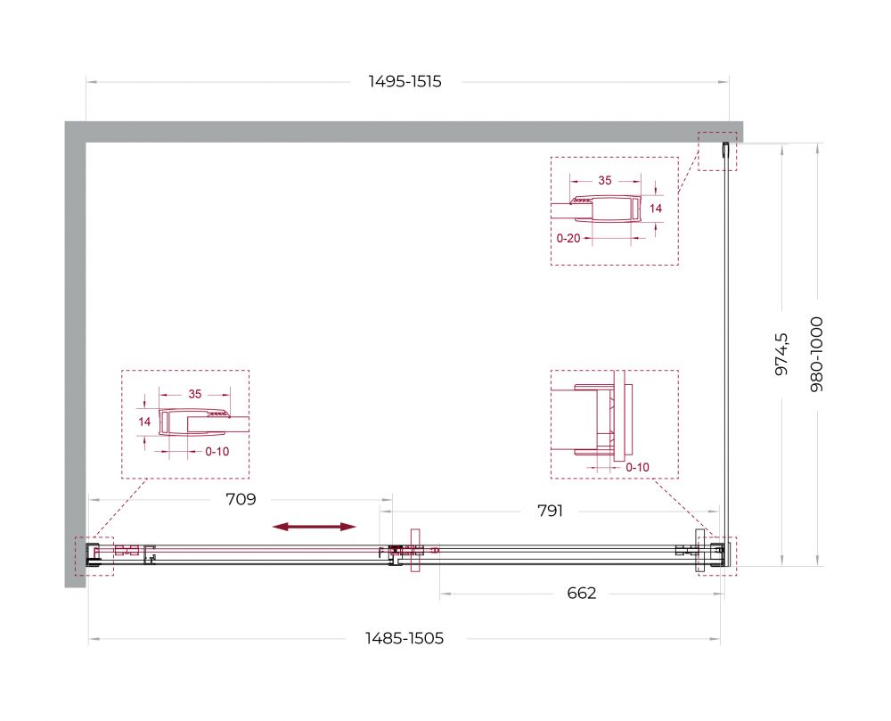● Система подвески: Двойные навесные ролики из нержавеющей стали с держателем стекла обеспечивают плавное движение створки, ее устойчивость и отсутствие перекосов.