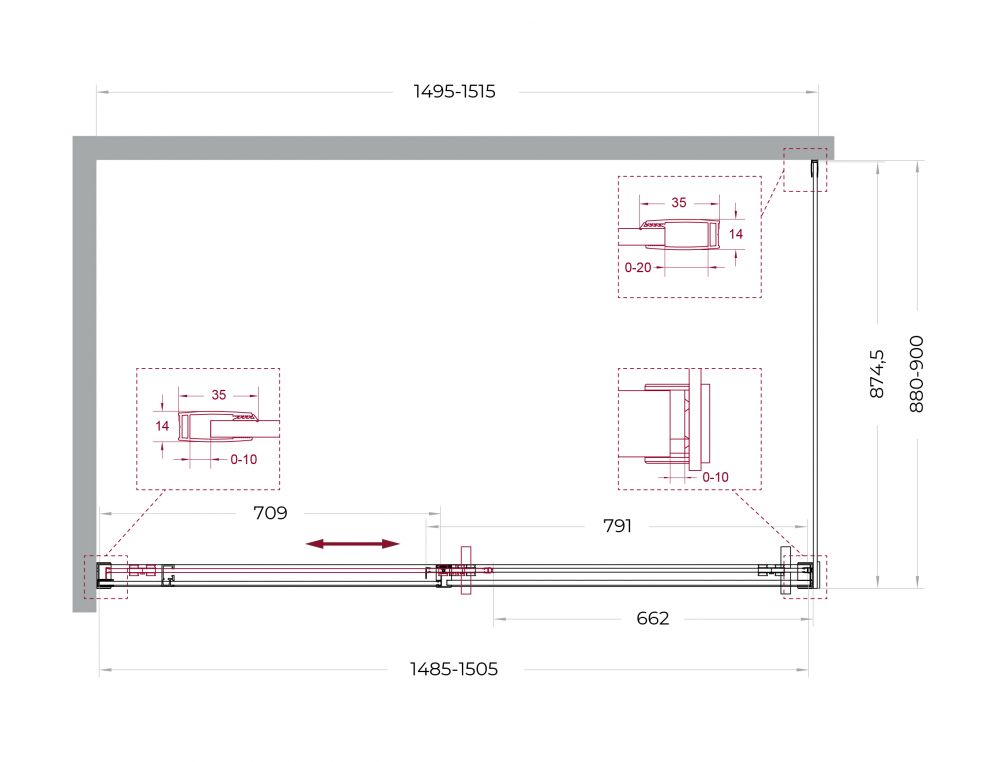 ● Система подвески: Двойные навесные ролики из нержавеющей стали с держателем стекла обеспечивают плавное движение створки, ее устойчивость и отсутствие перекосов.