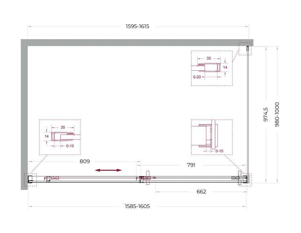 ● Система подвески: Двойные навесные ролики из нержавеющей стали с держателем стекла обеспечивают плавное движение створки, ее устойчивость и отсутствие перекосов.