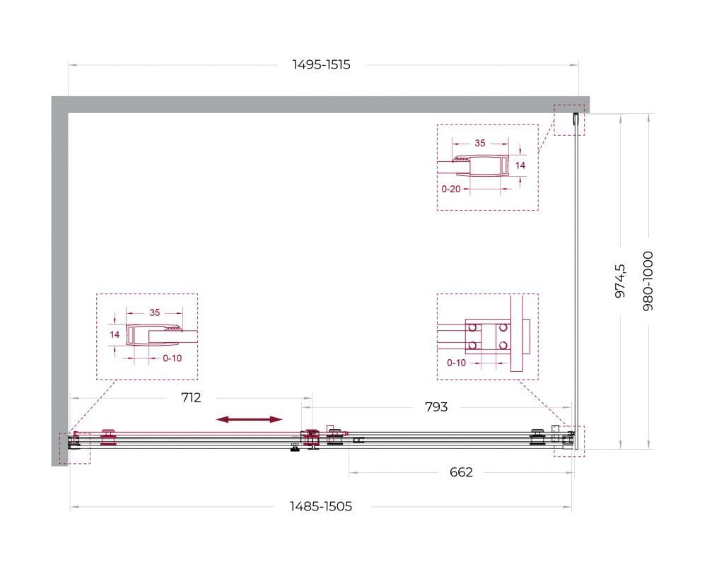 ● Коллекция предлагает три конфигурации, идеально подходящие для различных планировок ванных комнат: квадратную (A-1), прямоугольную (AH-1) и дверь в нишу (BF-1). Все они имеют высоту 2000 мм и доступны в наиболее востребованных размерах.