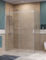 Коллекция сохраняет все преимущества минималистичного дизайна: минимум деталей, узкие профили и прозрачное стекло, которое не перегружает пространство, подчёркивая ощущение простора в ванной. Особая фишка — ролики увеличенного диаметра, обеспечивающие сверх плавное и бесшумное скольжение стеклянной панели без малейших усилий. Эти крупные элементы визуально доминируют, добавляя ограждению нотку надёжности и индустриальной эстетики в минималистичном стиле. Благодаря им ощущается лёгкость движения двери, усиливающая общее впечатление роскоши и стабильности, будто конструкция парит.