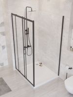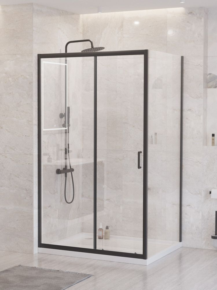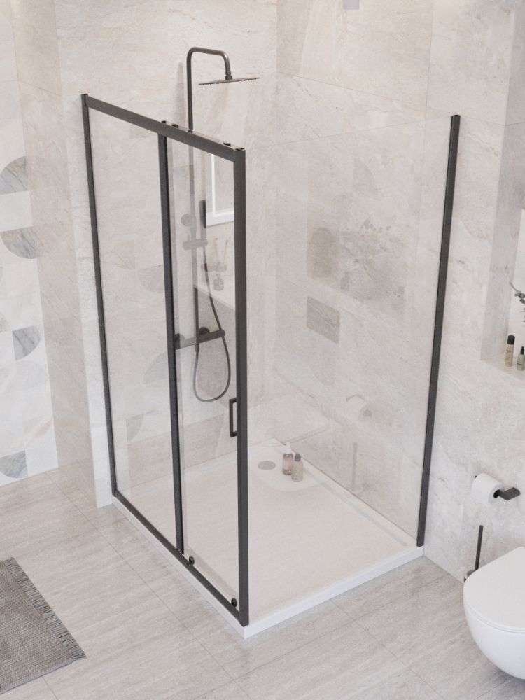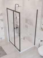 UNO-195-AH-1-110/90-C-NERO Душевой уголок в размере 110x90. Форма прямоугольная, толщина стекла 5 мм. Цвет стекла: прозрачное. Профиль в цвете черный