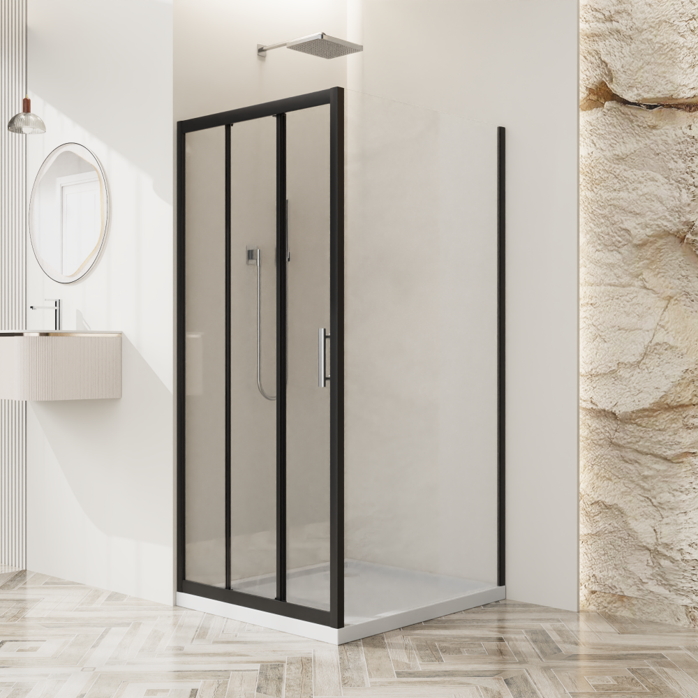 UNO-195-AHF-31-100/80-C-NERO Душевой уголок в размере 100x80. Форма прямоугольная, толщина стекла 5 мм. Цвет стекла: прозрачное. Профиль в цвете черный